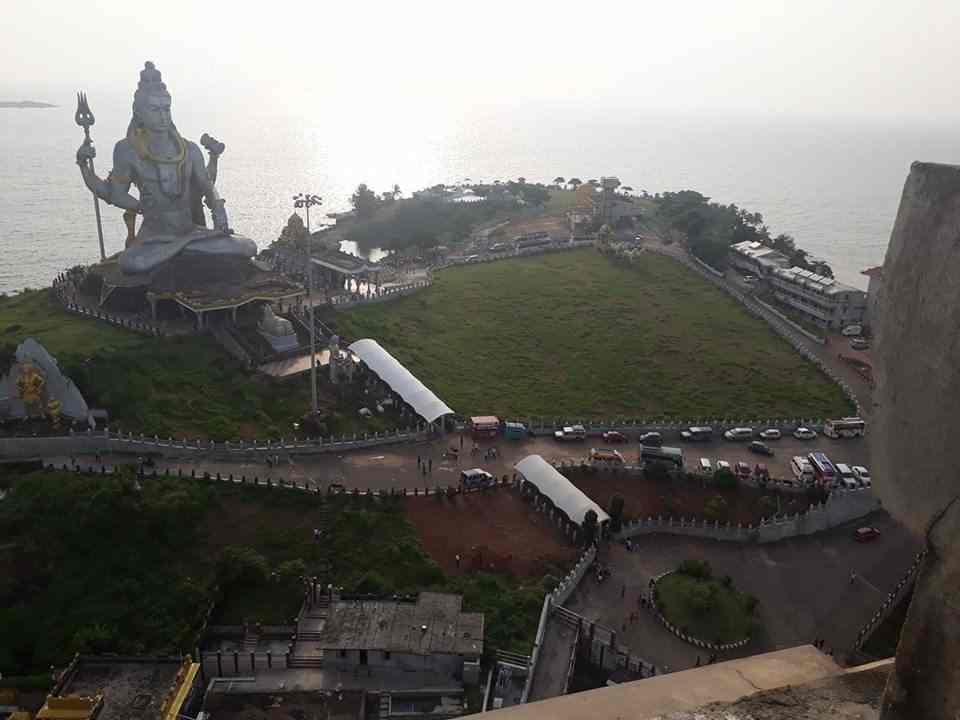 murudeshwar shiva temple is an ancient shiva temple in india located at the northern kannada district of Karnataka,three sides of the temple is surrounded by arabian sea. murudeshwar shiva temple has a 20 storey gopura and 123 feet idol of shiva present here.statue of lord shiva can be seen from the rajagopura.According to hindu mythology ravana the king of lanka pleased for athma linga(the form of god shiva which give immortality who worship it),shiva appeared and give him the athma linga but there is a condition with it,shoud not placed in ground until he reaches lanka.the sage narada make out of the consequences after it reached lanka,he approached vinayaka to solve the crisis.vinayaka knew that he performing evening rituals,ravana was very compulsory in worship to shiva.